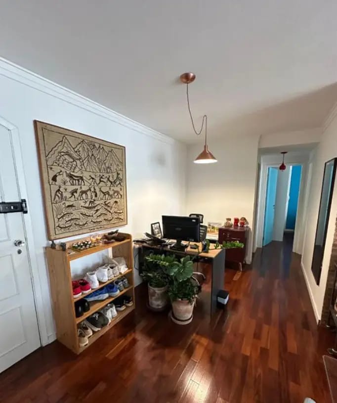Apartamento reformado charmoso, com cozinha americana, 2 dormitórios, 2 banheiros, ampla sala, bem iluminado, 55 metros, 1 vaga de garagem, oferece um espaço confortável. Ar condicionado no quarto principal, aquecedor a gás, fogão, coifa, cozinha com armários planejados, mesa de jantar com cadeiras, moderno.